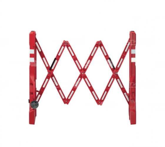 Компактное, устойчивое, раздвижное ограждение из прочного PE материала удобно в перемещении и приводится в рабочее положении в течение нескольких секунд. Стойки конструкции могут быть наполнены водой для утяжеления конструкции. Лицевая поверхность барьера оснащена полосами из светоотражающей пленки. За счет этого увеличивается предупреждающий эффект, особенно, в темное время суток.